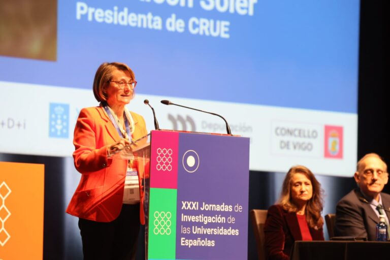 La presidenta de CRUE también se ha referido a que encuentros como este son cruciales, porque «el trabajo colaborativo consolida redes de confianza para afrontar los retos globales y avanzar en transparencia, asegurando que la investigación repercuta en la sociedad. Cuando el conocimiento se traduce en bienestar compartido, la investigación cumple su objetivo».